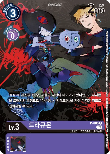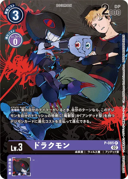 On Play If you have a purple Tamer and it's your turn, this Digimon may digivolve into a Digimon card with the [Dark Animal] or [Undead] trait in your trash.
