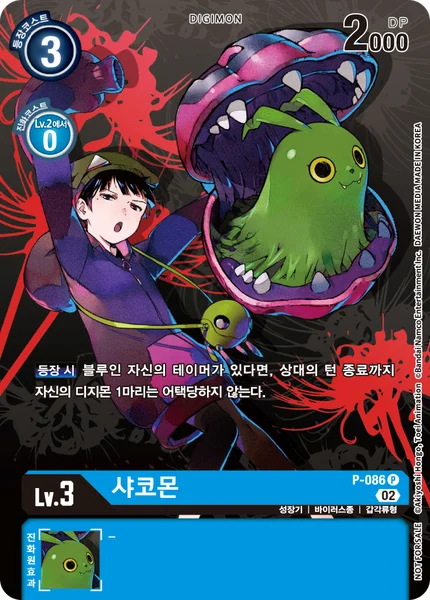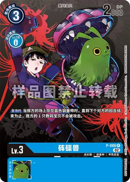 On Play If you have a blue Tamer, 1 of your Digimon can't be attacked until the end of your opponent's turn.