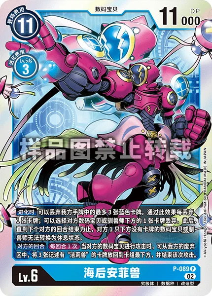 When Digivolving You may trash up to 3 blue cards from your hand. For each card trashed by this effect, you may choose 1 of your opponent's Digimon or Tamers and trash it. Then, 1 of your opponent's Digimon or Tamers without cards under it can't suspend until the end of your opponent's turn. Opponent's TurnOnce Per Turn When an opponent's Digimon attacks, end that attack by returning 3 cards with [Jellymon] in their text from your trash to the bottom of your deck.
