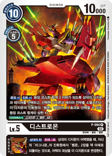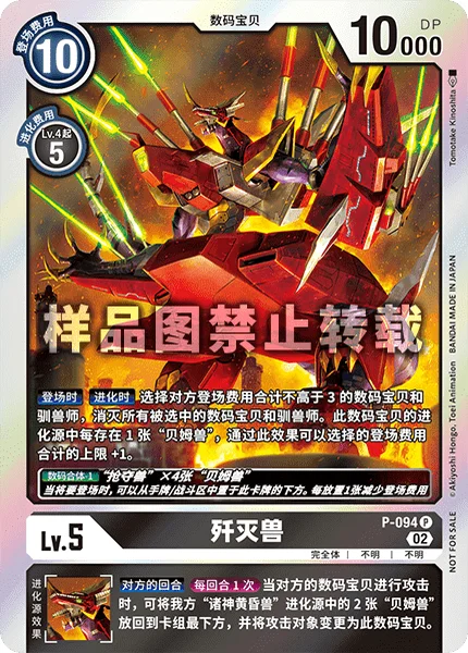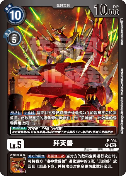 On PlayWhen Digivolving Choose any number of your opponent's Digimon and Tamers so that their play cost total is up to 3 and delete them. For each [Vemmon] in this Digimon's digivolution cards, add 1 to the maximum play cost total this effect can choose.