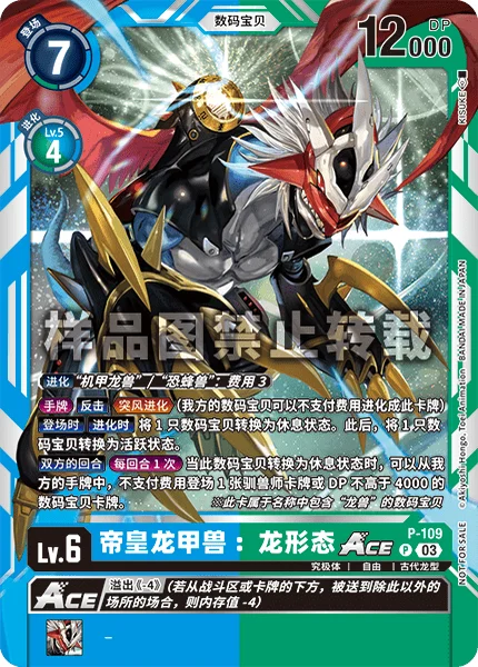 All TurnsOnce Per Turn When this Digimon becomes suspended, you may play 1 Tamer card or 1 Digimon card with 4000 DP or less from your hand without paying the cost.