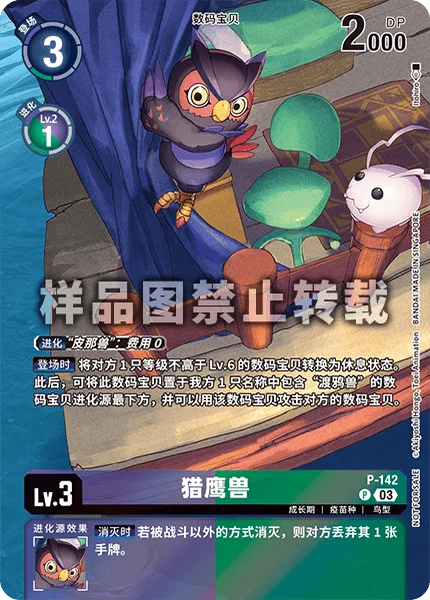 On Play Suspend 1 of your opponent's level 6 or lower Digimon. Then, by placing this Digimon as the bottom digivolution card of 1 of your Digimon with [Ravemon] in its name, that Digimon may attack an opponent's Digimon.