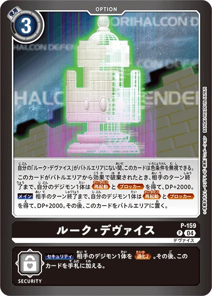 Main Until the end of your opponent's turn, 1 of your Digimon gains Reboot and Blocker, and gets +2000 DP. Then, place this card in the battle area.