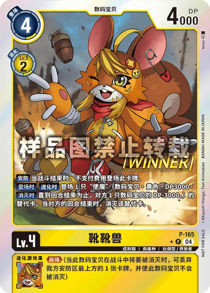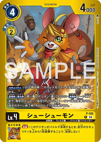 On Play When Digivolving Play 1 [Familiar] Token. (Digimon/Yellow/3000 DP/"On Deletion 1 of your opponent's Digimon gets -3000 DP for the turn.") At the end of your opponent's turn, delete that token.