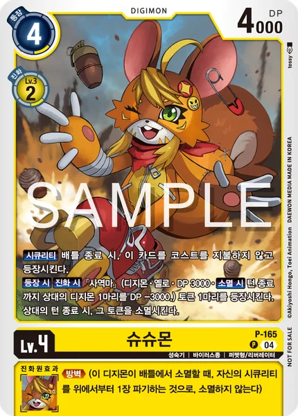 On Play When Digivolving Play 1 [Familiar] Token. (Digimon/Yellow/3000 DP/"On Deletion 1 of your opponent's Digimon gets -3000 DP for the turn.") At the end of your opponent's turn, delete that token.