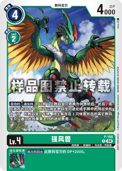 On Play When Digivolving You may suspend 1 Digimon. Then, if it's your turn, this Digimon may digivolve into a Digimon card with [Avian] or [Bird] in any of its traits in the hand. For every other suspended Digimon, reduce this effect's digivolution cost by 1.