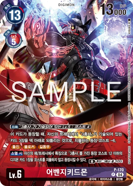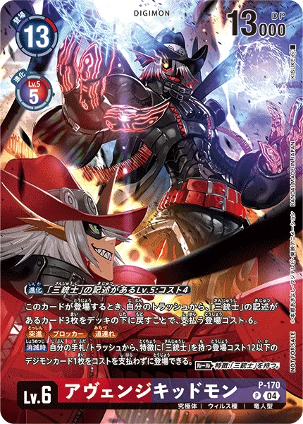 On Deletion You may play 1 [Three Musketeers] trait Digimon card with a play cost of 12 or less from your hand or trash without paying the cost. Rule Trait: Has [Three Musketeers].