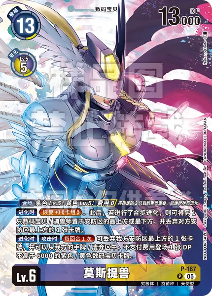 DNA DigivolvePurpleLv.5 +YellowLv.5: Cost 0 Stack the 2 specified Digimon and digivolve unsuspended.