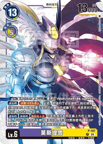 DNA DigivolvePurpleLv.5 +YellowLv.5: Cost 0 Stack the 2 specified Digimon and digivolve unsuspended.