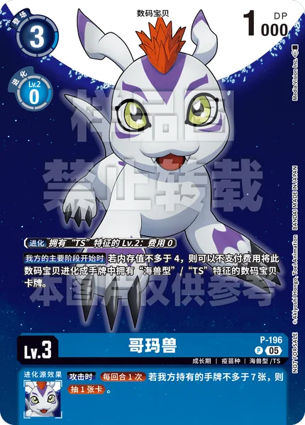 Start of Your Main Phase If you have 4 or less memory, this Digimon may digivolve into a Digimon card with the [Sea Beast] or [TS] trait in the hand without paying the cost.