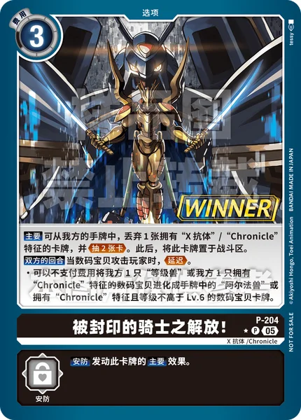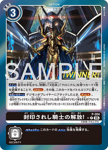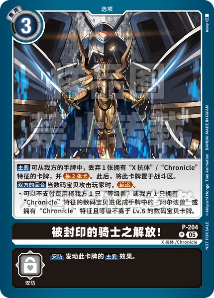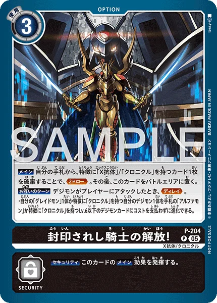 All Turns When Digimon attack players, Delay. ・1 of your [Grademon] or Digimon with the [Chronicle] trait may digivolve into [Alphamon] or a level 6 or lower Digimon card with the [Chronicle] trait in the hand without paying the cost.