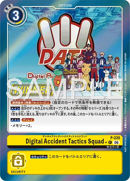 Main Reveal the top 3 cards of your deck. Add 1 card with the [DATA SQUAD] trait among them to the hand. Return the rest to the bottom of the deck. Then, place this card in the battle area.