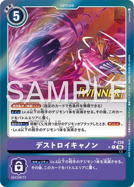 Your Turn When one of your [CS] trait Digimon attacks, Delay. ・Delete 1 of your opponent's level 6 or lower Digimon.