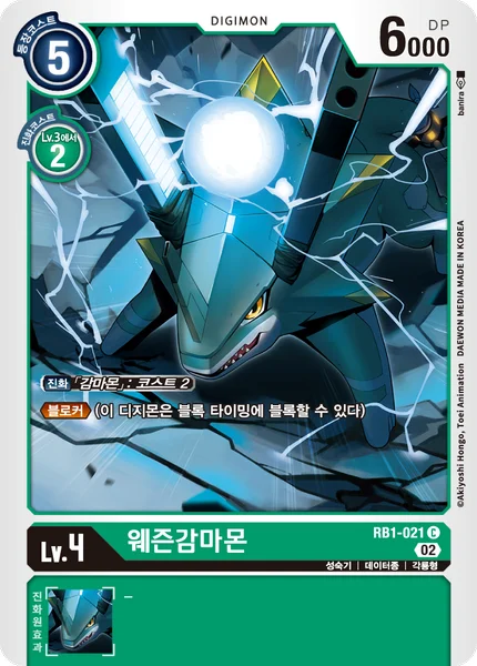 Blocker (When an opponent's Digimon attacks, you may suspend this Digimon to force the opponent to attack it instead.)