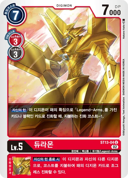 Your Turn When this Digimon would digivolve into a card in your hand that's black or has [Legend-Arms] in its traits, reduce the digivolution cost by 1.