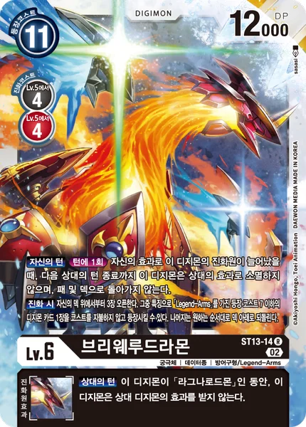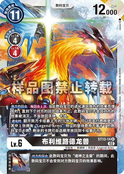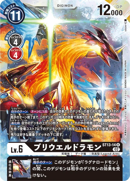 Your TurnOnce Per Turn When one of your effects places a digivolution card under this Digimon, your opponent's effects can't delete this Digimon or return it to its owner's hand or deck until the end of their turn.When Digivolving Reveal the top 3 cards of your deck. You may play 1 Digimon card with [Legend-Arms] in its traits and a play cost of 7 or less among them without paying its memory cost. Place the rest at the bottom of your deck in any order.