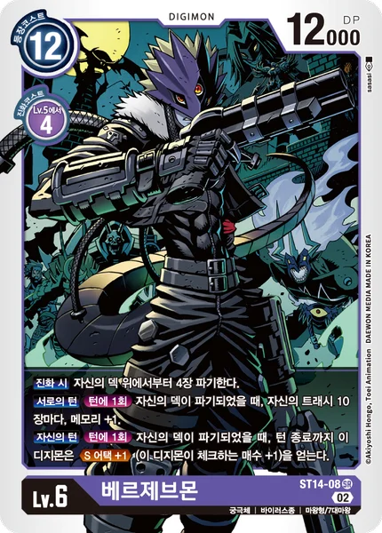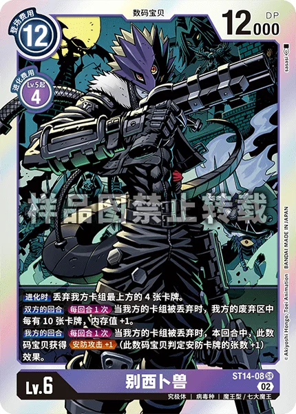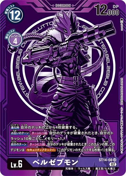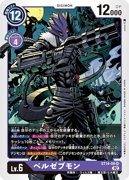 When Digivolving Trash the top 4 cards of your deck. All TurnsOnce Per Turn When a card is trashed from your deck, gain 1 memory for every 10 cards in your trash.Your TurnOnce Per Turn When a card is trashed from your deck, this Digimon gains Security Attack +1 (This Digimon checks 1 additional security card) for the turn.
