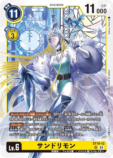 When Digivolving You may play 2 [Familiar] Tokens. (Digimon/Yellow/3000 DP/"On Deletion 1 of your opponent's Digimon gets -3000 DP for the turn.")