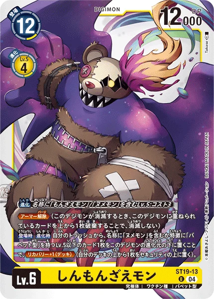 On Play When Digivolving By placing 1 level 5 or lower card with [Numemon] in its name or the [Puppet] trait from your trash as this Digimon's bottom digivolution card, Recovery +1 (Deck). (Place the top card of your deck as your top security card.)