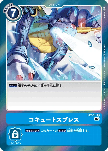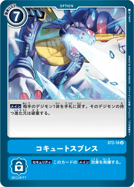 Main Return 1 of your opponent's Digimon to its owner's hand. (Trash all of the digivolution cards of that Digimon.)