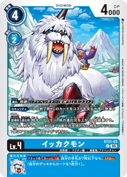 On Play When Digivolving Trash the top 2 digivolution cards of 1 of your opponent's Digimon. Then, 1 of their Digimon with no digivolution cards can't attack or block until their turn ends.