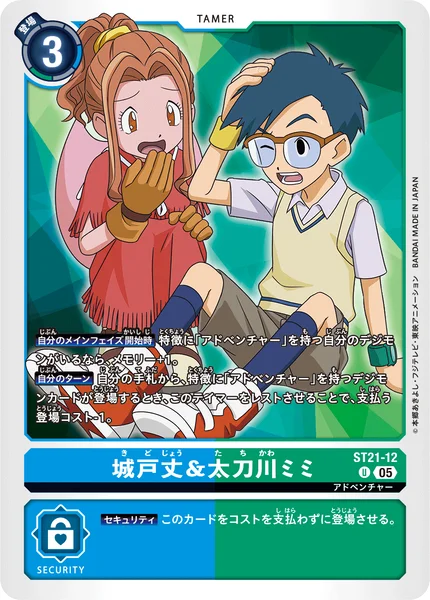 Your Turn When any Digimon cards with the [ADVENTURE] trait would be played from your hand, by suspending this Tamer, reduce the play cost by 1.