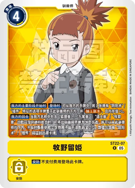 Start of Your Main Phase On Play By placing 1 Option card with the [Onmyōjutsu] or [Plug-In] trait from your hand under this Tamer, Draw 1 and gain 1 memory.