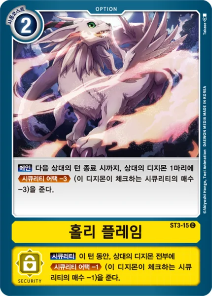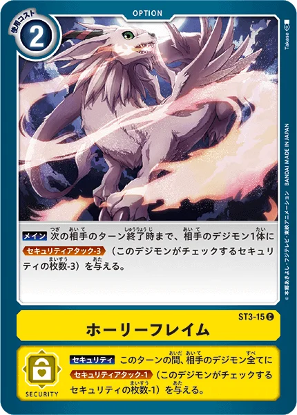 Main 1 of your opponent's Digimon gains Security Attack -3 (This Digimon checks 3 fewer security cards) until the end of your opponent's next turn.