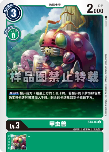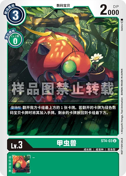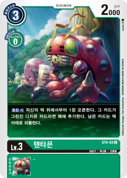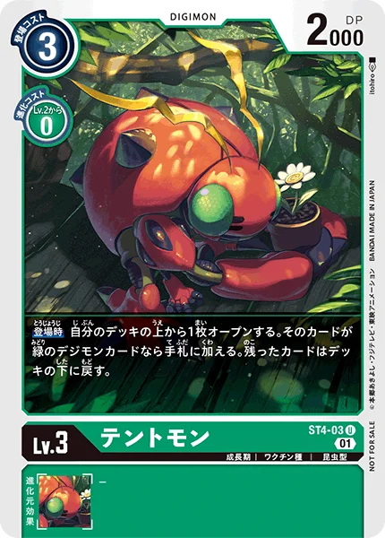 On Play Reveal the top card of your deck. If it's a green Digimon card, add it to your hand. Otherwise, place it at the bottom of your deck.