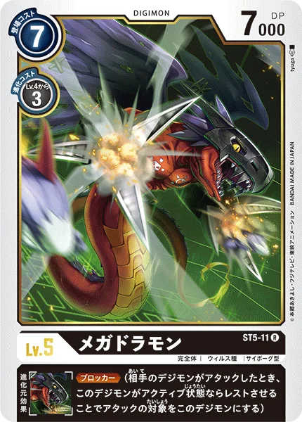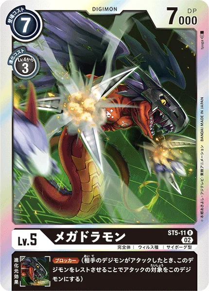 Blocker (When an opponent's Digimon attacks, you may suspend this Digimon to force the opponent to attack it instead.)