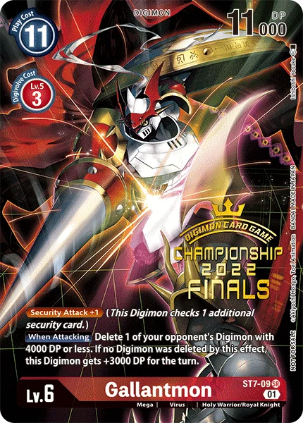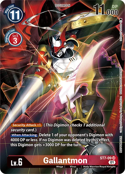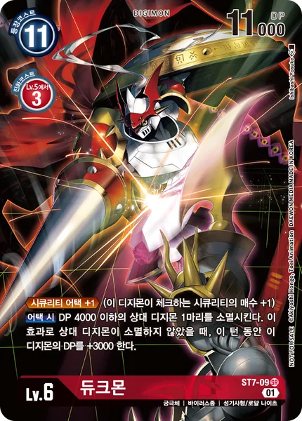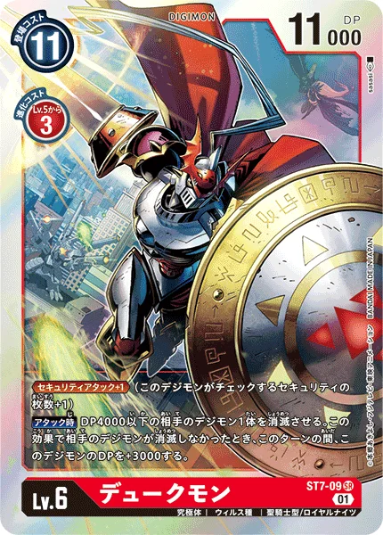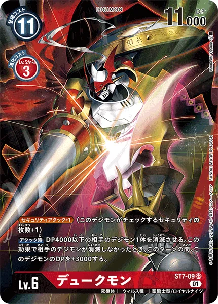 Security Attack +1 (This Digimon checks 1 additional security card.)When Attacking Delete 1 of your opponent's Digimon with 4000 DP or less. If no Digimon was deleted by this effect, this Digimon gets +3000 DP for the turn.