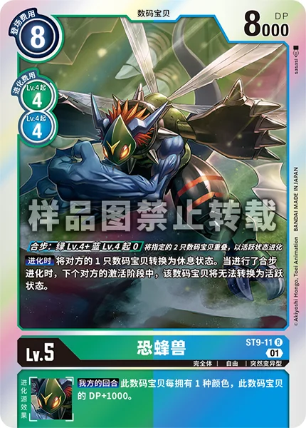 DNA Digivolution 0 fromGreenLv.4 +BlueLv.4 Digivolve unsuspended with the 2 specified Digimon stacked on top of each other. When Digivolving Suspend 1 of your opponent's Digimon. When DNA digivolving, that Digimon doesn't unsuspend during its owner's next unsuspend phase.