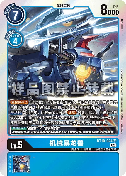 登場時ターン終了まで、このデジモンは速攻を得る。その後、デジクロスしていたなら、相手のターン終了まで、進化元の枚数がこのデジモン以下の相手のデジモン3体はアタックとブロックができない。