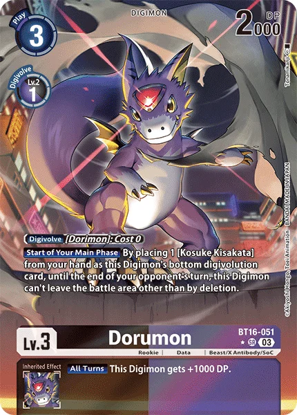 自分のメインフェイズ開始時自分の手札から、「象潟講介」1枚をこのデジモンの進化元の下に置くことで、相手のターン終了まで、このデジモンは消滅以外でバトルエリアを離れない。