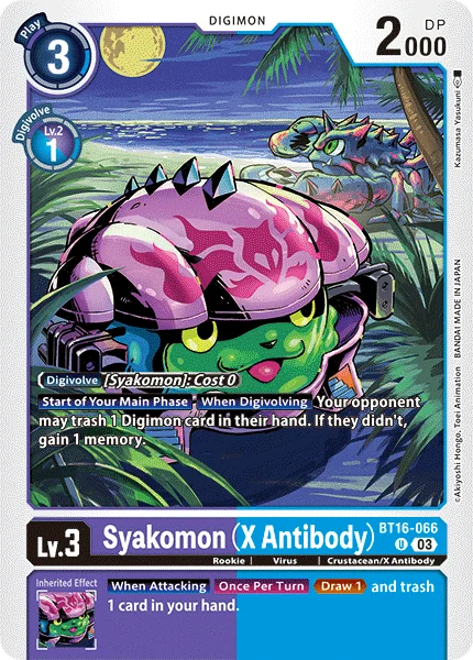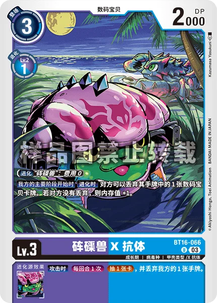 自分のメインフェイズ開始時進化時相手は相手の手札のデジモンカード1枚を破棄できる。破棄しなかったなら、メモリー+1。