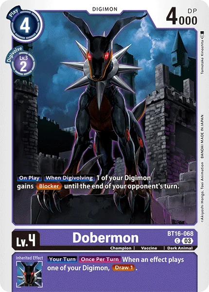 登場時進化時相手のターン終了まで、自分のデジモン1体はブロッカーを得る。