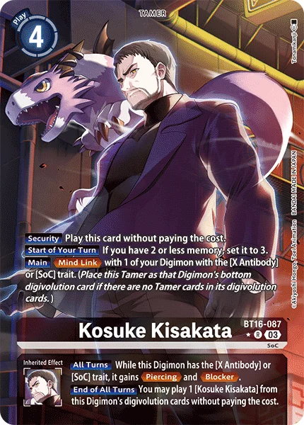 メイン特徴に「X抗体」/「SoC」を持つ自分のデジモン1体にマインドリンク(このテイマーを、進化元にテイマーカードが無いそのデジモンの進化元の下に置く)。