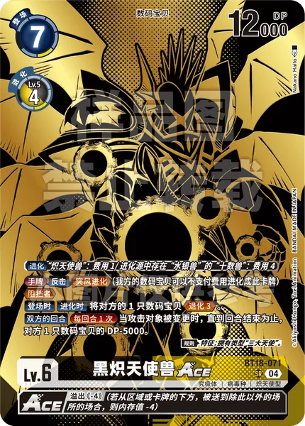 登場時進化時相手のデジモン1体を退化3。 お互いのターンターンに1回アタックの対象が変更されたとき、ターン終了まで、相手のデジモン1体をDP-5000。