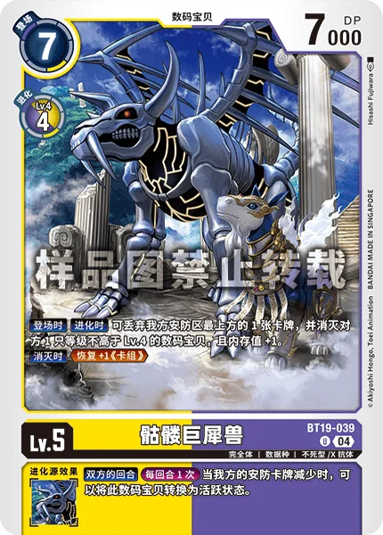 登場時進化時自分のセキュリティを上から1枚破棄することで、Lv.4以下の相手のデジモン1体を消滅させ、メモリー+1。