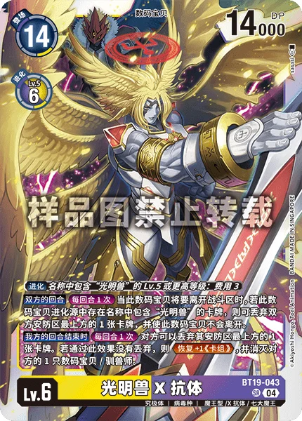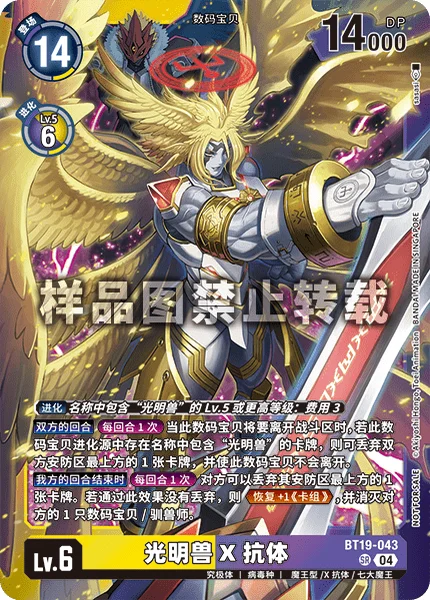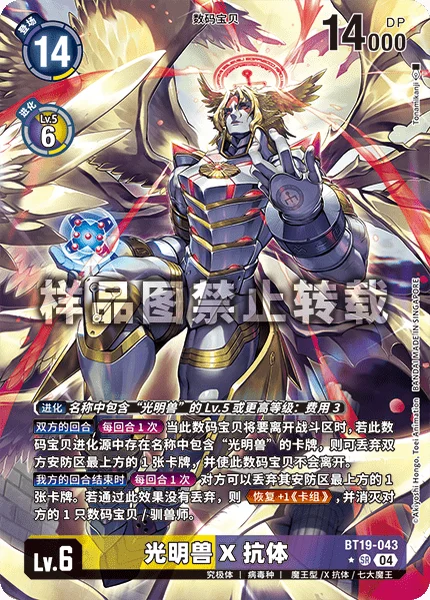 お互いのターンターンに1回このデジモンがバトルエリアを離れるとき、このデジモンの進化元に名称に「ルーチェモン」を含むカードがあるなら、お互いのセキュリティを上から1枚破棄することで、離れない。