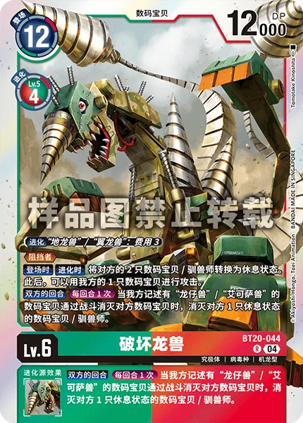 お互いのターンターンに1回「ドラコモン」/「エグザモン」の記述がある自分のデジモンがバトルで相手のデジモンを消滅させたとき、レスト状態の相手のデジモン/テイマー1体を消滅させる。