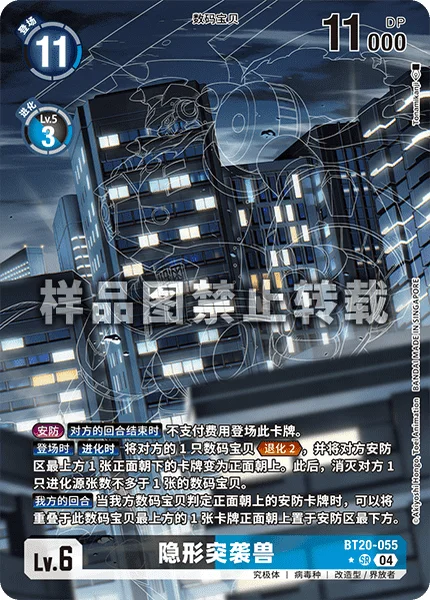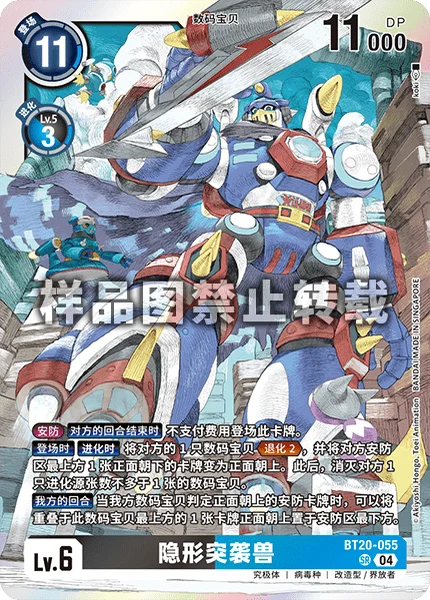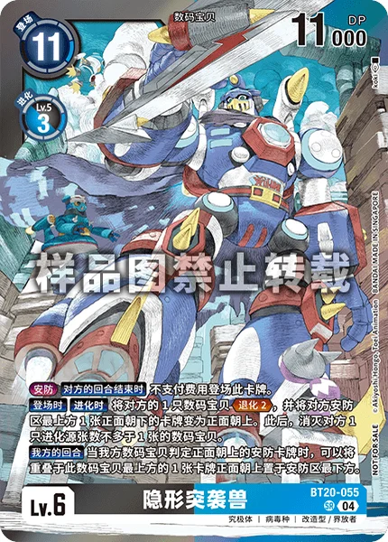 登場時進化時相手のデジモン1体を退化2し、相手の裏向きのセキュリティを上から1枚表向きにする。その後、進化元の枚数が1枚以下の相手のデジモン1体を消滅させる。
