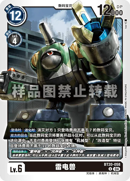 お互いのターンこのデジモンがバトルエリアを離れるとき、このデジモンの進化元から、特徴に「マシーン型」/「サイボーグ型」を持つ登場コスト11以下のデジモンカード1枚をコストを支払わずに登場できる。