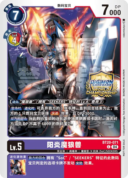 お互いのターンこのデジモンの進化元にテイマーカードが置かれたとき、DP6000以下の相手のデジモン1体を消滅させる。