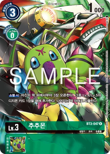 消滅時自分のデッキの上から3枚オープンする。その中のLv.4かLv.5のデジモンカード1枚を手札に加える。残ったカードは好きな順番でデッキの下に戻す。