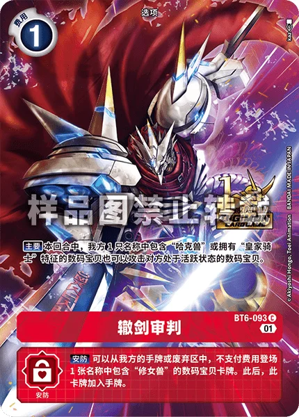 メイン名称に「ハックモン」を含むか特徴に「ロイヤルナイツ」を持つ自分のデジモン1体は、このターンの間、アクティブ状態の相手のデジモンにもアタックできる。