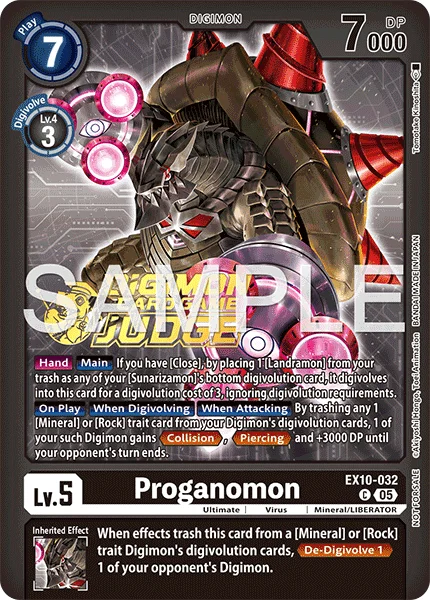 登場時進化時アタック時自分のデジモンの進化元から、特徴に「鉱物型」/「鉱石型」を持つカード1枚を破棄することで、相手のターン終了まで、特徴に「鉱物型」/「鉱石型」を持つ自分のデジモン1体は衝突と貫通を得て、DP+3000。