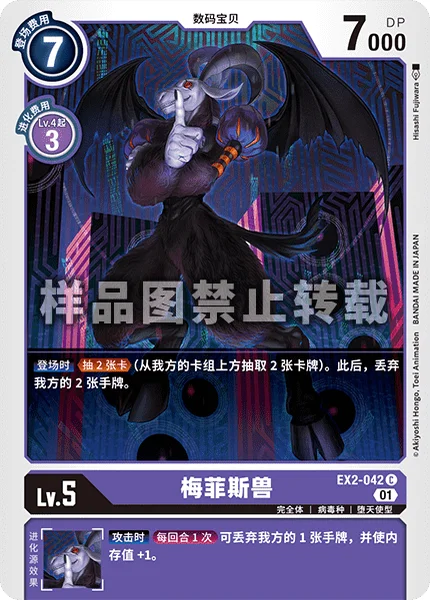 登場時2ドロー(自分のデッキからカードを2枚引く)。その後、自分の手札を2枚破棄する。