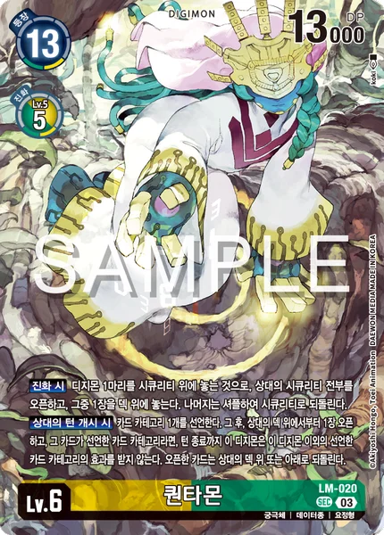 (※このカードの【相手のターン開始時】効果は、【相手のターン開始時】カードカテゴリー1つを宣言する。その後、相手のデッキの上から1枚オープンし、そのカードが宣言したカードカテゴリーなら、ターン終了まで、このデジモンはこのデジモン以外の、宣言したカードカテゴリーの効果を受けない。オープンしたカードは相手のデッキの上か下に戻す。」に変更されました)