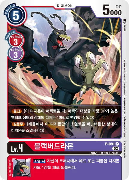 突進(このデジモンがアタックしたとき、アタックの対象を最もDPの高いアクティブ状態の相手のデジモン1体に変更できる)